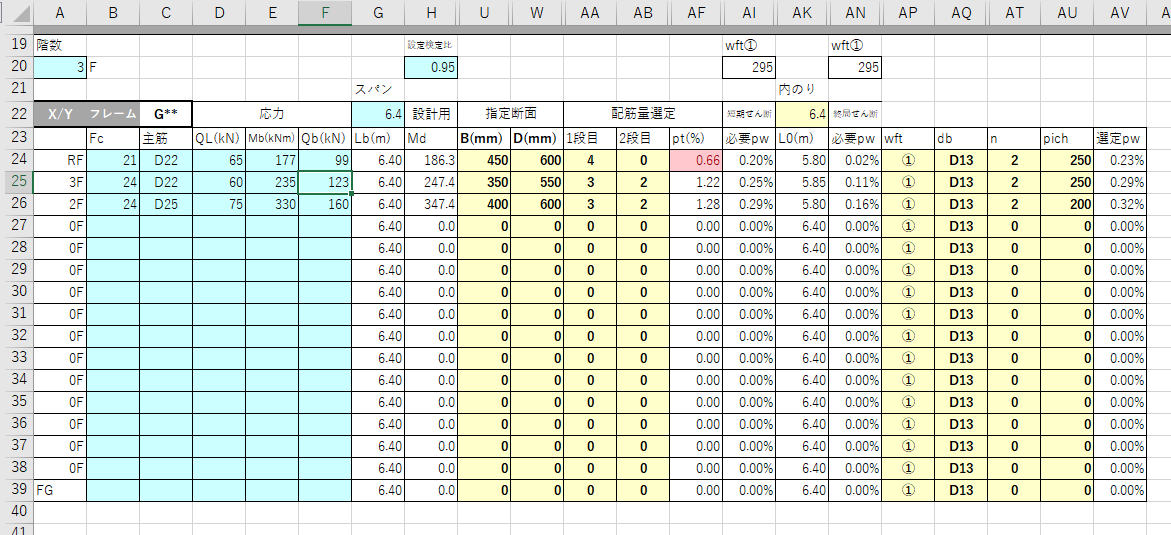 エクセルでRCラーメンの梁断面を自動算定するツールを作りました。