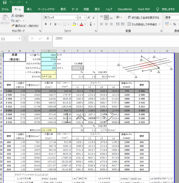 あらかじめスパンをいくつか計算してあり、スパンと荷重が決まっているときに必要な断面を見つけられます。