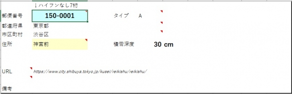 郵便番号の住所に垂直積雪量を紐づけて検索できるようにデータベース化しました